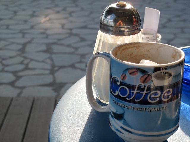 Trikiliksillä käydessämme ovet ovat aina auki ja väkeä lappaa edes takaisin neljässä sukupolvessa. Aina välillä autetaan isomummoa rollaattorin kanssa olohuoneesta keittiöön ja takaisin perheen pienipien pyöriessä jaloissa. Siellä me istumme, muun muassa joulupäivänä, perintösoffalla ja juomme kahvia antiikkisista kahvikupeista ja syömme jonkun perheen naisista leipomia baakkelseja. Kreikkalaiset kakut ja pikkuleivät sisältävät aina joko pähkinää, mantelia tai hunajaa tai kaikkia niitä. Jouluna baakkelsien päällä on lisäksi aimo kerros tomusokeria. Keskustelut pyörivät aina politiikan ja talouden ympärillä. Kapteeni ja tyttärensä Maria puhuvat aivan loistavaa englantia, kun taas Yrjön kanssa pärjäillään ”Me Tarzan, You Jane” –kielikuvilla. Kukaan muu perheenjäsen ei puhu sanaakaan englantia, mutta jotenkin ne kuulumiset kuitenkin saadaan vaihdettua ja kahvit juotua. Välillä oman väen lisäksi seuraan liittyy myös kavereita ja naapureita. Ovet ovat kirjaimellisesti auki kadulle asti. Euroopassa ollaan mutta todellakin sen äärimmäisellä kaakkoislaidalla. Näkeehän täältä Turkkiin asti, eikä vain kirkkaalla säällä.