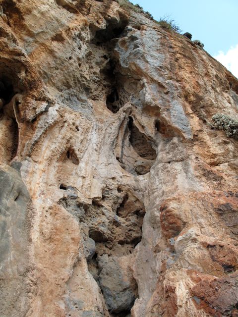 Btw: Toni on menettänyt järkensä (jos sitä nyt koskaan olikaan). Tultuamme eilen kiipeämästä, mies veti päällensä märkäpuvun ja lähti juosten uimaan. Voitteko kuvitella, juosten uimaan matkaa mereen vielä kiipeilypäivän jälkeen, sairasta sanon minä! Minä sentään olin järjissäni ja istuin parvekkeella (siinä kuuluisassa) ilta-auringossa ja join Mythosta (=oikein raikas paikallinen olut) ja söin sipsejä. Olihan kinttuni oluen ja sipsit ansainnut, skål!