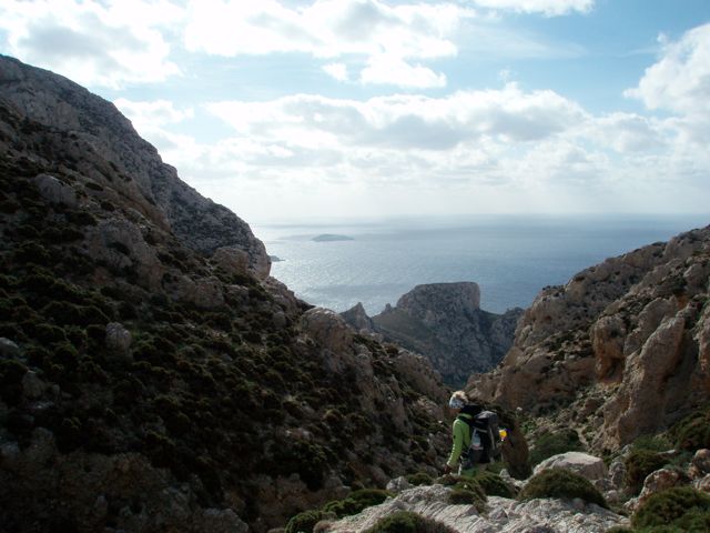 Koska minä ja marraskuu emme pidä toisistamme, eikä Tonikaan mikään pimeyden ja räntäsateen suurin ystävä ole päätimme tänä vuonna aikaistaa Kalymnoksen lomaamme vuodenvaihteesta marraskuulle. Aiemmin kesällä olin ollut satavarma, että olen kiipeilykunnossa viimeistään marraskuussa. No, toisin kävi. Täällä sitä nyt kuitenkin ollaan ja ihmetellään. Kamat on purettu ja taloksi asetuttu Trikiliksen perheen omistamaan Alkyoniin. Parvekkeeltamme aukeaa tuttuakin tutumpi, aina niin upea näkymä Aegeanmerelle. Suoraan edessämme on toinen saari, Telendos, jonka laki kohoaa noin 400 metrin korkeuteen. Telendoksen ja Kalymnoksen välissä on kapea salmi, jossa puksuttaa tuon tuosta kalastusveneitä. Salmi on suojattu muinaismuistolain nojalla, eikä siellä saa esimerkiksi sukeltaa. Aiemmin saaria yhdisti matala kannas, joka sortui mereen maanjäristyksessä taloineen päivineen aika päivää sitten. Kalymnokselle, ja etenkin parvekkeellemme täällä, tyypillinen äänimaisema on salmesta kantautuva puksutus, jota säestää pari yli-innokasta kukkoa ja iltaa kohden yhä kovaäänisemmäksi muuttuva heinäsirkkojen kuoro. En yhtään ihmettele, että yhden tunnetun kiipeilyreitin nimi on ”Kill the Cock”. Telendoksen takana, etelään ja länteen, aukeaa Aegeanmeri niin pitkälle kuin silmä kantaa, ja horisontissa siintää aika ajoin kauppalaivojen silhuetteja. Kirkkaalla säällä lännessä saattaa nähdä myös Amorgoksen saaren, jonne on matkaa noin 60 kilometriä. Auringonlasku on aina yhtä vaikuttava. Näyttää aivan siltä kuin oranssinhehkuinen pallo uppoaisi mereen. Meillä on auringonlaskusta niin monta valokuvaa, että niillä tapetoisi kokonaisen linnan.
