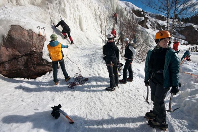 Toivon myös, että tapahtuma madalsi naisten kynnystä siirtyä sisältä ulos, muovilta jäälle. Jääkiipeilyskene on ehkä hivenen miehinen, ja voi siten olla vieras maailma vasta-alkajanaisille. Naisen on aikalailla helpompi mennä aerobiciin kuin ulos kiipeämään jäätä. Tätä kynnystä haluaisin madaltaa ja rohkaista naisia muodostamaan köysistöjä, astumaan ulos, opettelemaan asioita itse ja kiipeämään omalla tasollaan, omalla tavallaan ja omia reittejään. Kuten yllä totesin, meillä on oivat mahdollisuudet kiivetä, vaikka sitten vuoden ympäri.