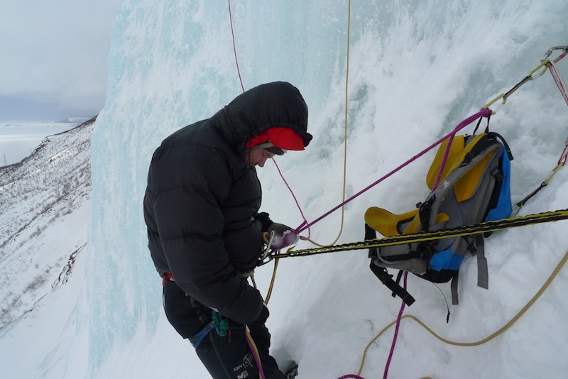 Korouoman jääkiipeilytapahtumassamme olin paikalla perjantai-illasta maanantai-iltapäivään siten, että kokonaisia kiipeilypäiviä kertyi kolme. Ekana päivänä tikkasimme Pekan kanssa ruskeaa virtaa ristiin rastiin ja illan saunominen ja hirvikäristys Auttissa kruunasi mukavasti päivän. Oli aistittavissa jopa sellaista väsyneen raukean lupsakkaan iloista tunnelmaa, jota useimmiten olen kohdannut vuoristomajoilla. Päivän sankariteot jaetaan ja pohditaan huomista päivää viinilasin äärellä, mutta nukkumaan tainnutaan kuin yhteisestä hiljaisesta sopimuksesta jo varhain.