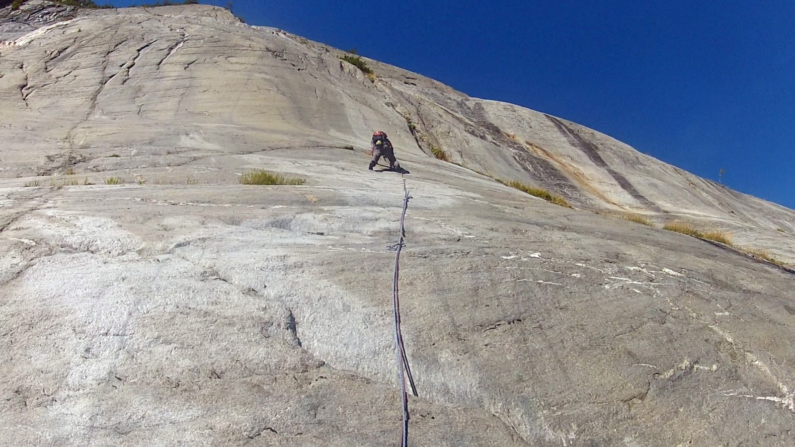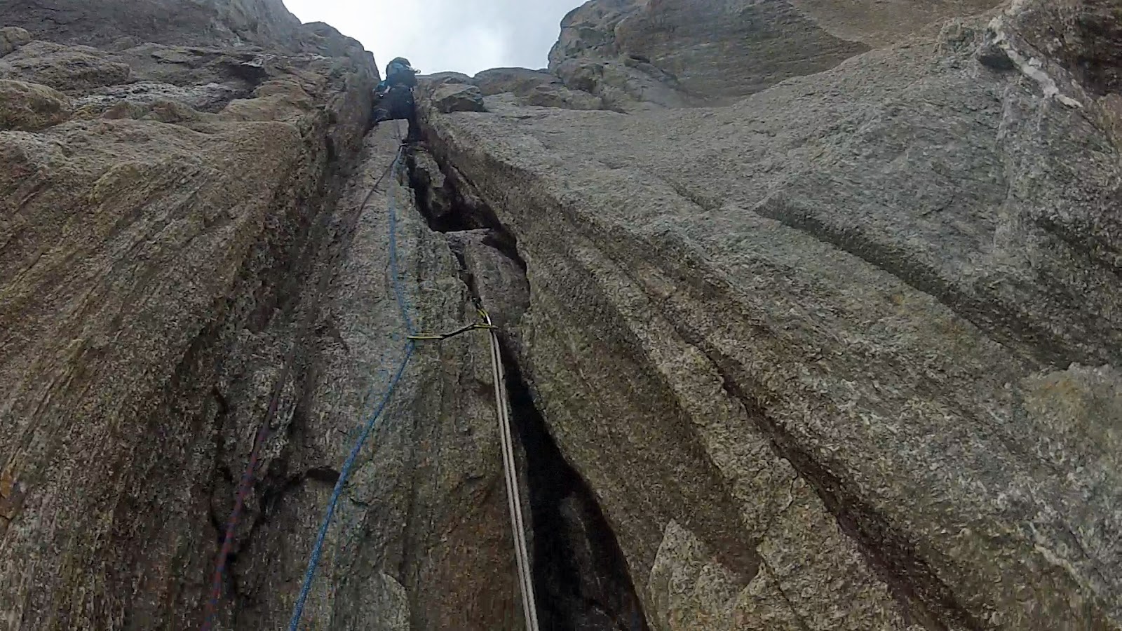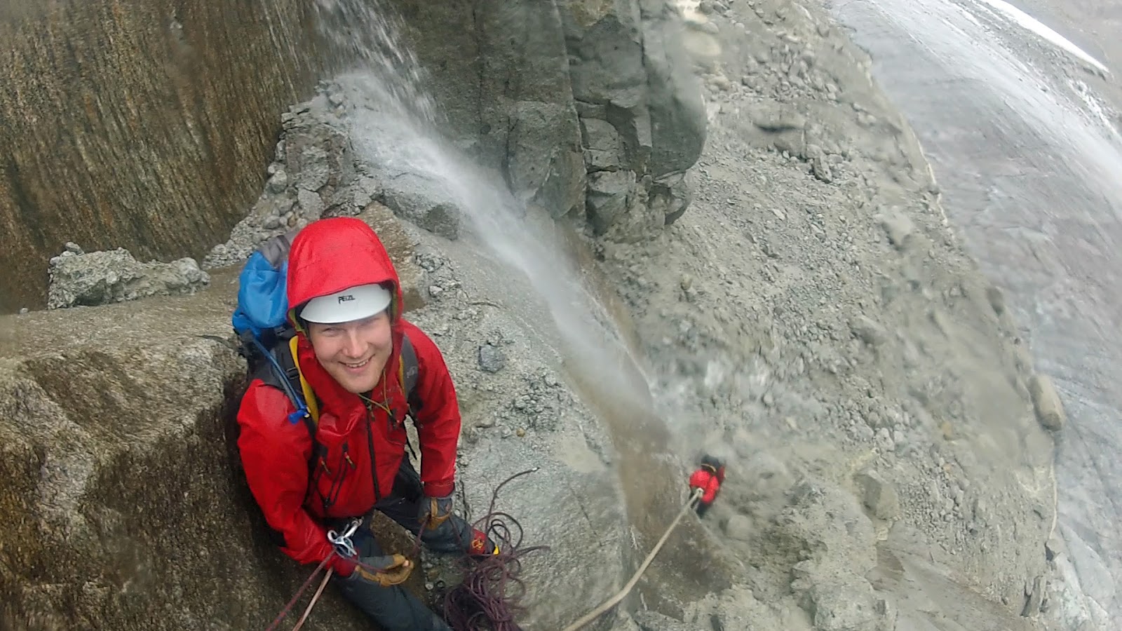 Reitille päästyä olikin meno sitten moninkerroin helpompaa, ainakin metrin-pari, ainakin tylsäpäille. Ekalla semiroikkuständillä oli vaikeinta valita ajatus siitä että ”kun köyden terävä pää kohta putoaa niin joudumme kaikki molokin kitaan” vs. ”vittu jos jos tästä joudutaan pakittaan niin korouoma pitää kiivetä takas toiseen suuntaan”. Yleismaailmallinen ilmastonmuutos oli nimittäin vaikuttanut reittiin alapäästään silläviisiin että 5c:ksi mainittu eka pätkä oli hieman muuntunut. Tarpeellisen ajan kuluttua terävästä päästä kuuluikin ”olen pahoillani..” – tylsässä päässä kaikui ”takas korouomaanko..?” Onneksi terävämmät väitti että siitä räkistä jääneellä papanalla voidaan huolettomin mielen lasketua. Kun vielä kohta löytyi joku naapurireitille jätetty kusenpolttama viritys, josta läskeimmän selvittyä hengissä voitiin koko retkunta päästää piinasta kohti reissun kruxia – Enversin majan kaudenlopetusspydäriä.