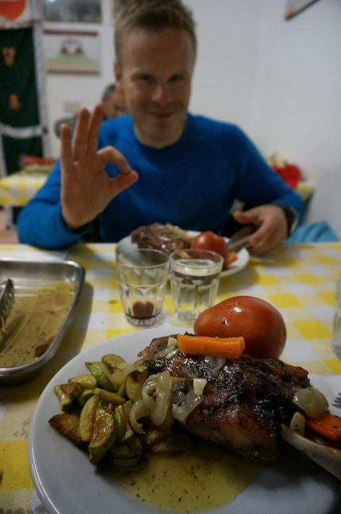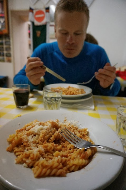 kiipeilypäivän jälkeen vasta edessä. Ruokailu! Ensin maukas pasta-carbonara,