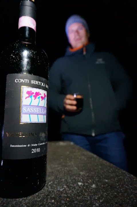 vuoristotien levikkeellä ja naukkailimme Val di Mellon tuliaisemme ennen