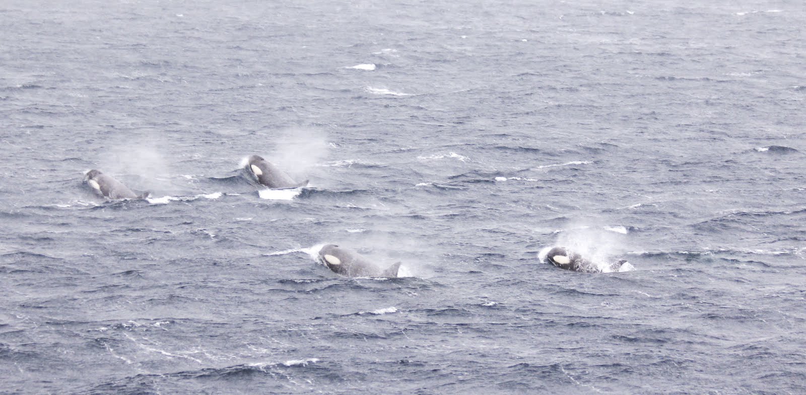 spectacular show. A family of 5 Orcas, a.k.a. Killer Whales swim past the ship