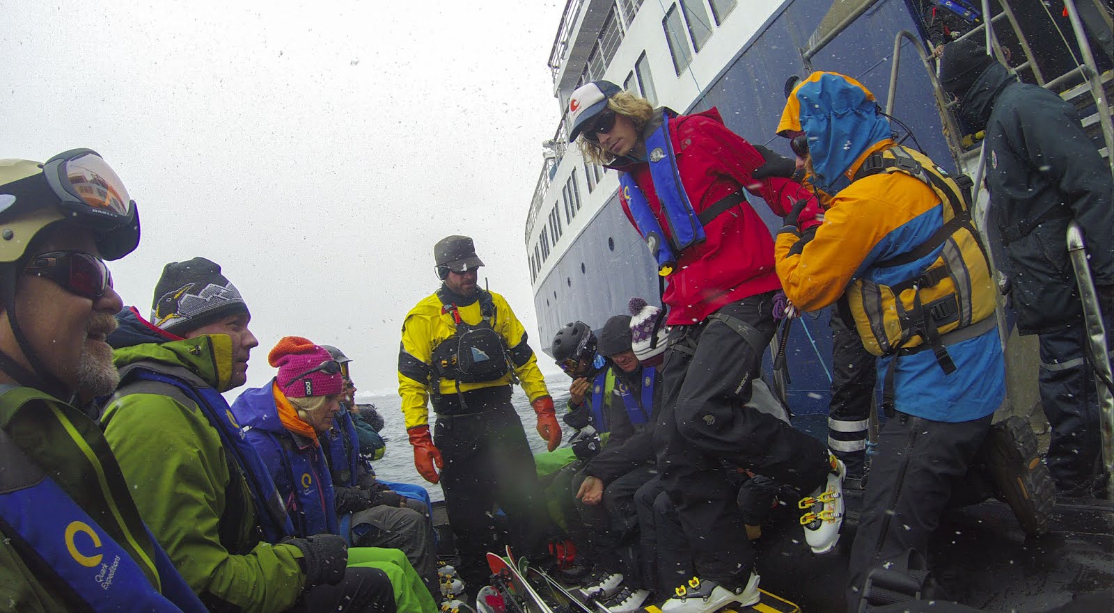 ahead of us. Nice skin up and ski down before we call in the Zodiac to take us