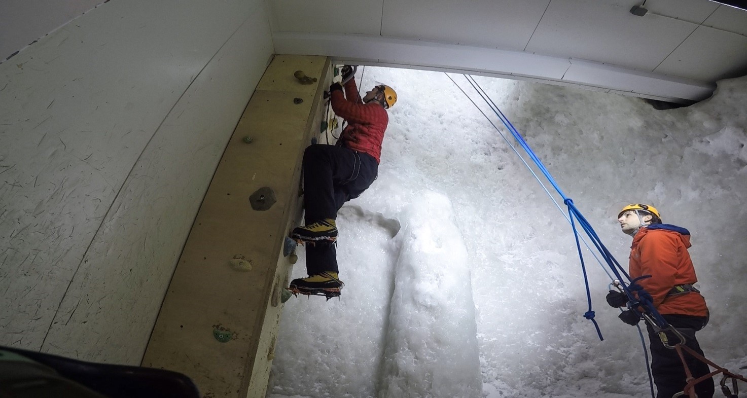rakennetusta jääkiipeilypakastimesta. Koko homman typeryydelle naureskellessa