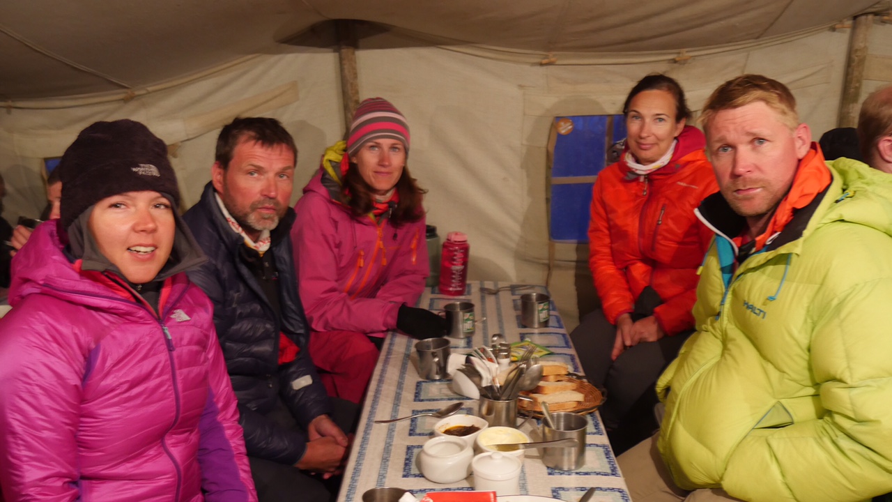 Lisäksi kylmyys, kuumuus ja kaikenlaiset itselle uudet, vieraat olosuhteet kuluttavat vielä enemmän. Kun polttoaine loppuu, loppuu myös meno. Se on saletti. Jos itsellä ei vielä ole kokemusta pahemmin, överit on aina paremmat kuin vajarit. Sekä energian että juoman suhteen ei kannata kauheasti vilkuilla viereisiin pöytiin. On aina niitä jotka pärjäävät yhdellä snickersillä ja puolella litralla vettä pitkän päivän, mutta turha luulla että olisit yksi heistä, etenkin jos olet toimistotyöläinen ja satunnainen vuorilla liikkuja. Silloin yleensä patukkaa pitää työntää naamariin yksi toisensa jälkeen. Ja juomahuollosta on huolehdittava koko ajan.